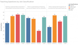 The difference tells me that the overall faculty experience is potentially very different from the staff (SHRA staff) experience when it comes to teaching. It also provides us with an opportunity to better understand each other’s experiences.